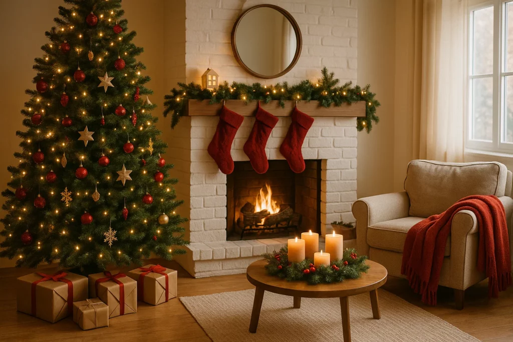 N’oubliez pas les éléments sensoriels : les bougies parfumées à la cannelle ou au sapin renforcent l’atmosphère festive et accueillante.